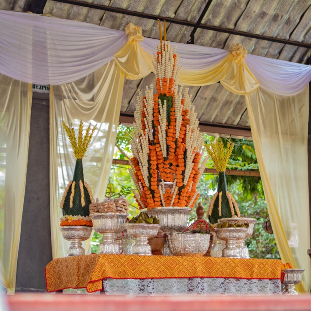 the sacred floral centerpiece used in the traditional Lao Baci Ceremony.