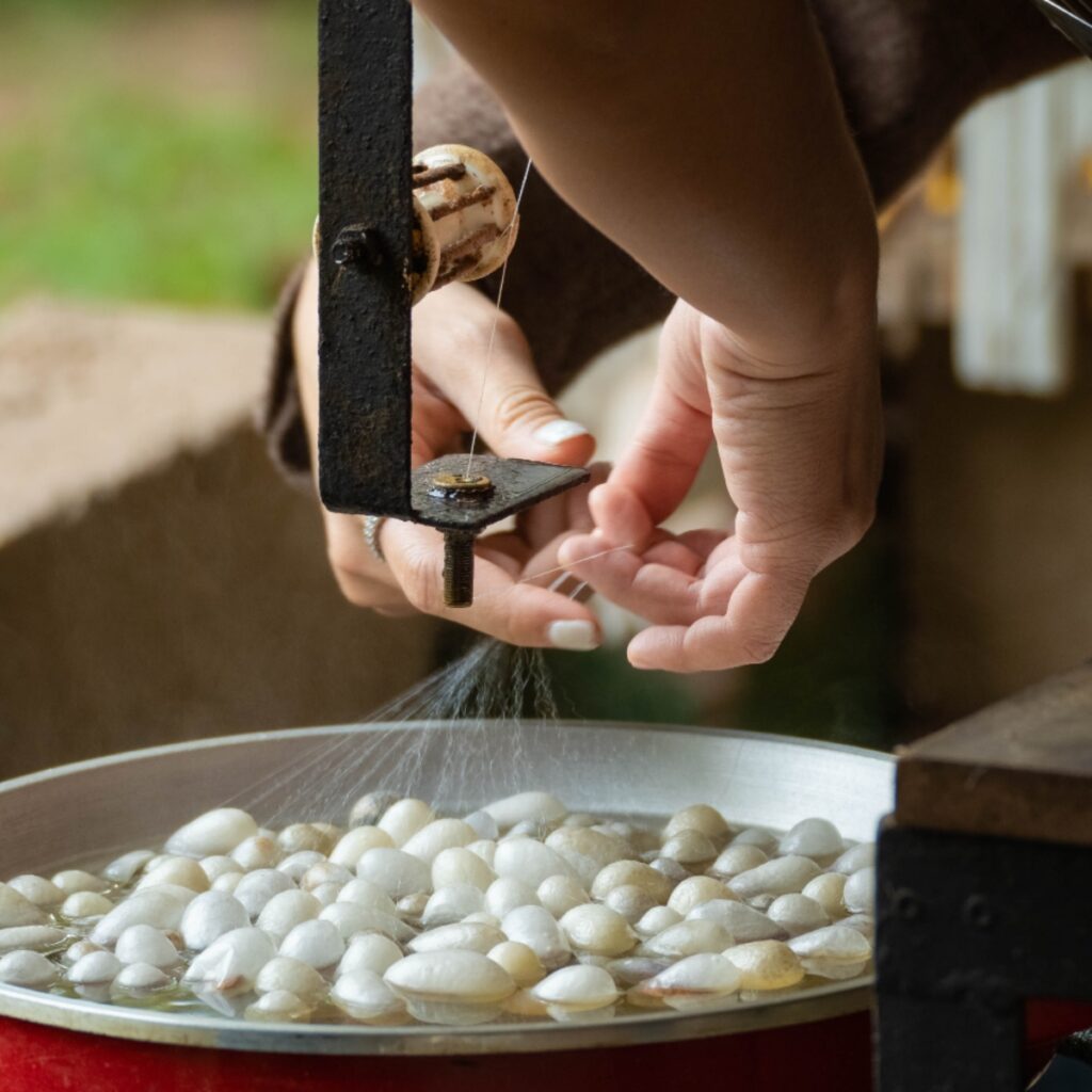 Feel the soft thread slip between your fingers and watch silk come alive from the cocoon.
